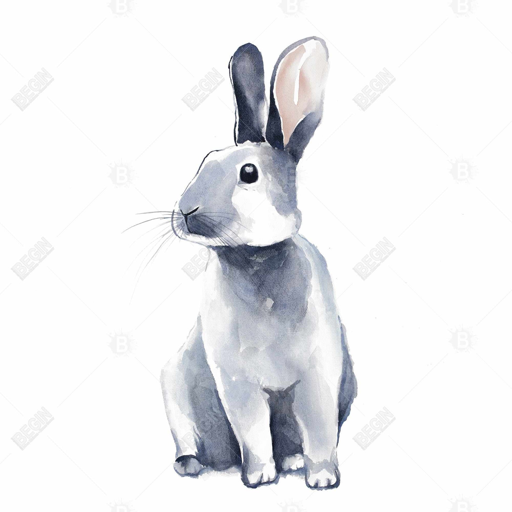 Toile encadrée « Lapin curieux gris » | Décoration de chambre scandinave