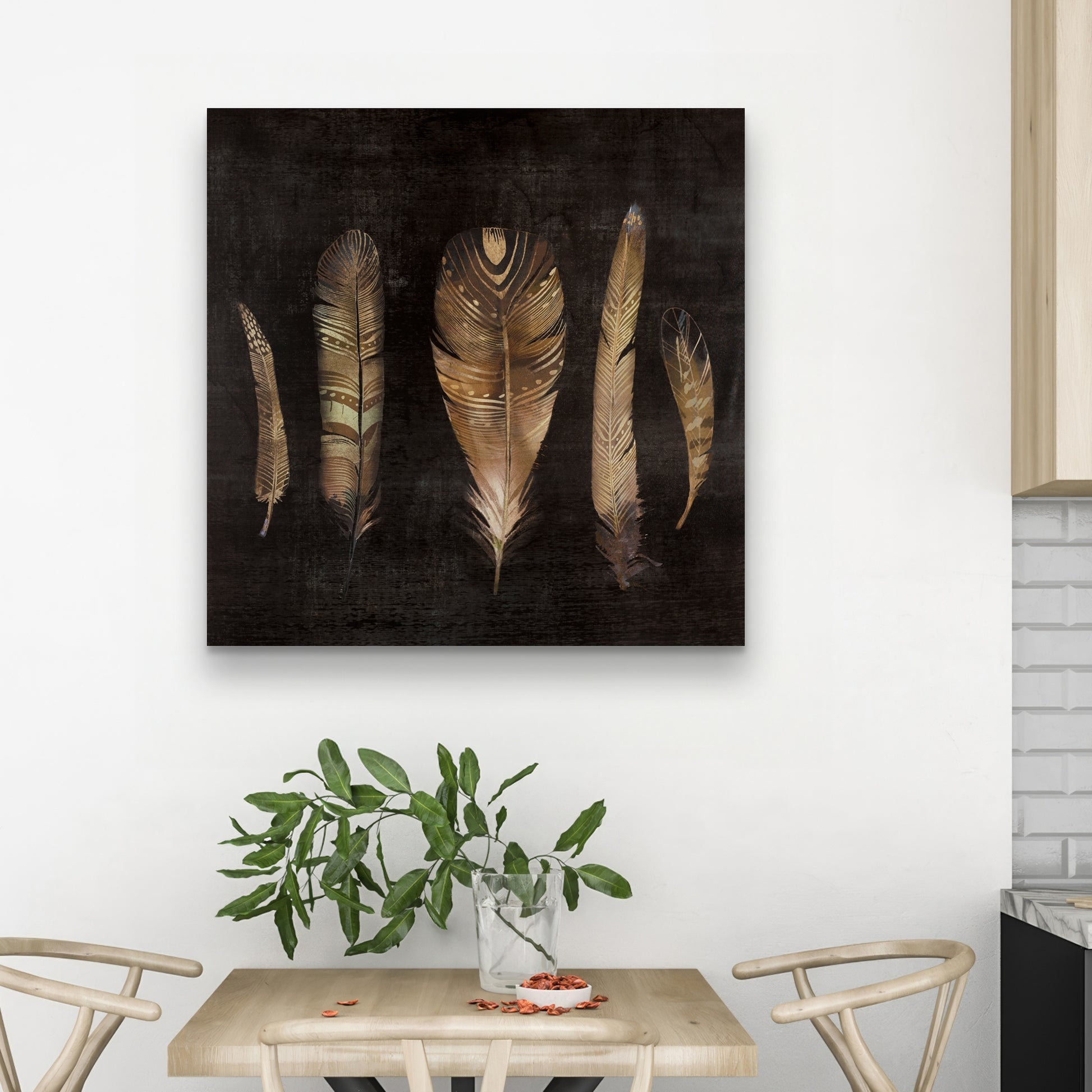 Ensemble de plumes marron | Toile bohème pour décoration intérieure