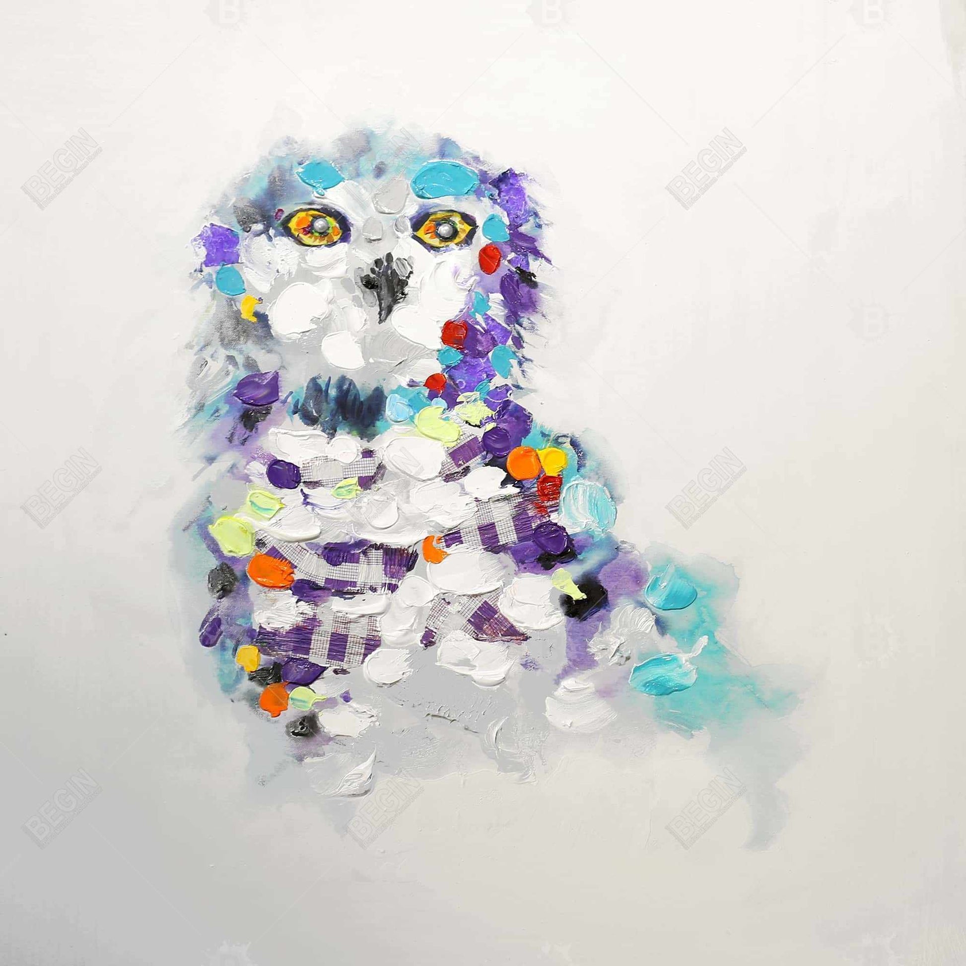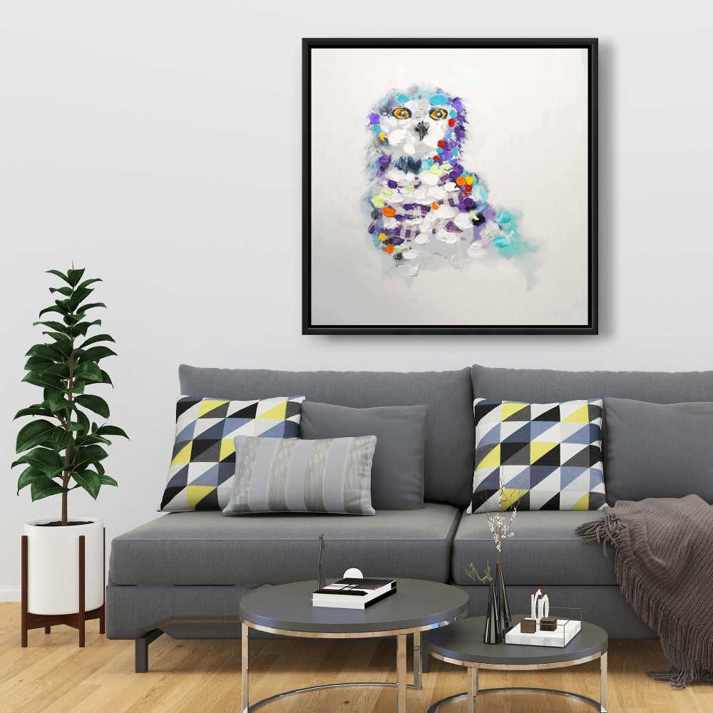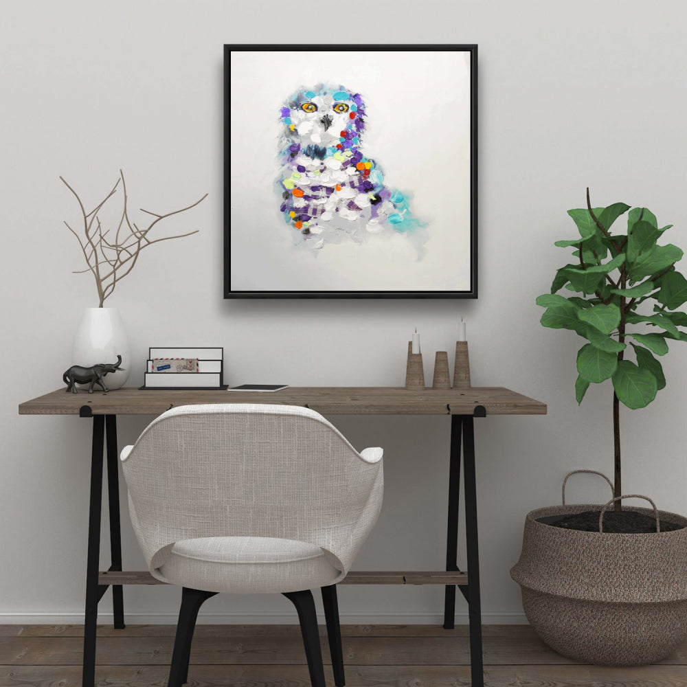 Toile encadrée « Chouette abstraite » | Décoration d'intérieur avec animaux et oiseaux violets