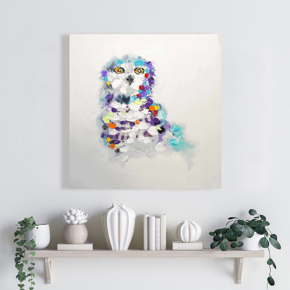 Toile abstraite représentant un hibou - Décoration artistique contemporaine violette