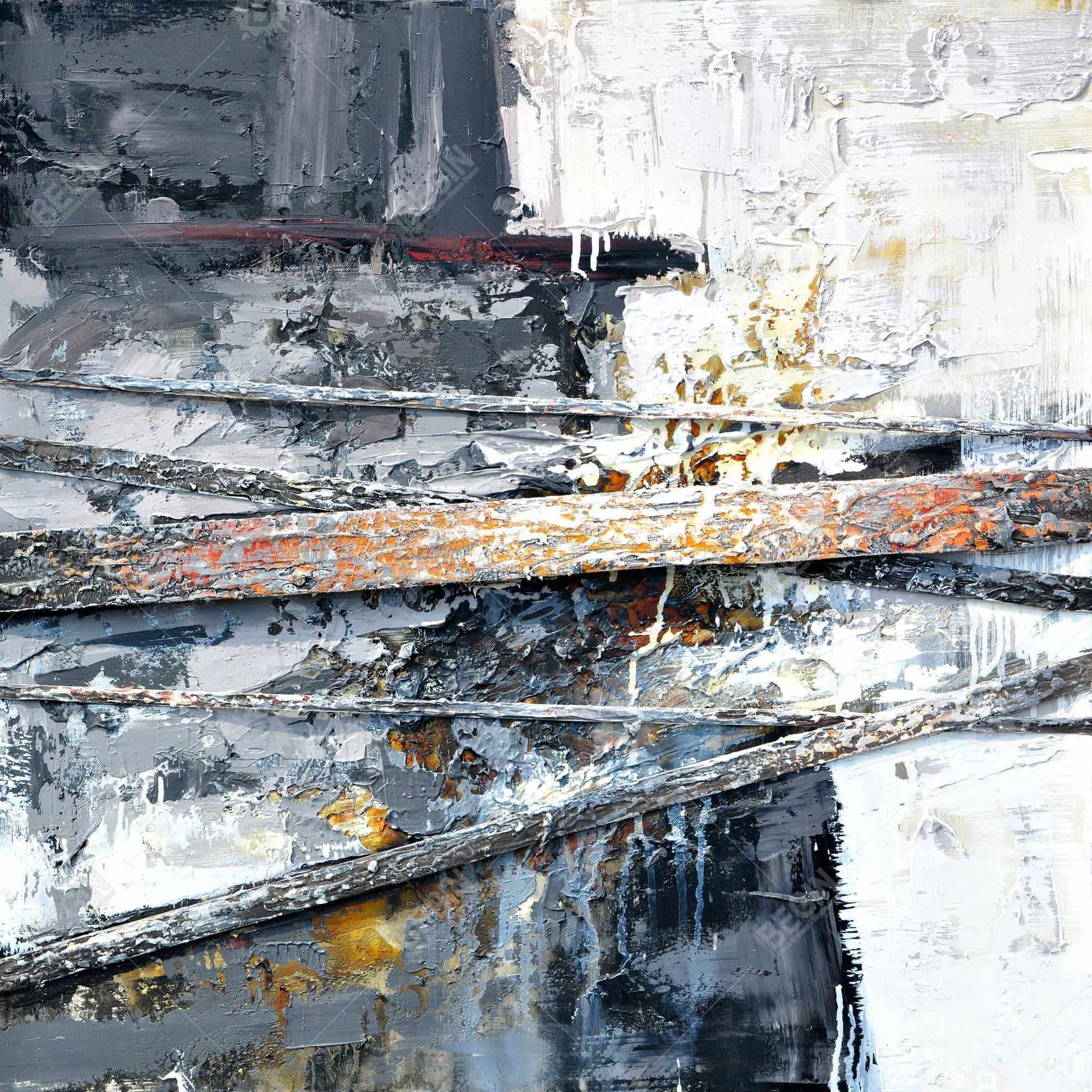 Rayures texturées et éclaboussées de peinture | Décoration abstraite sur toile