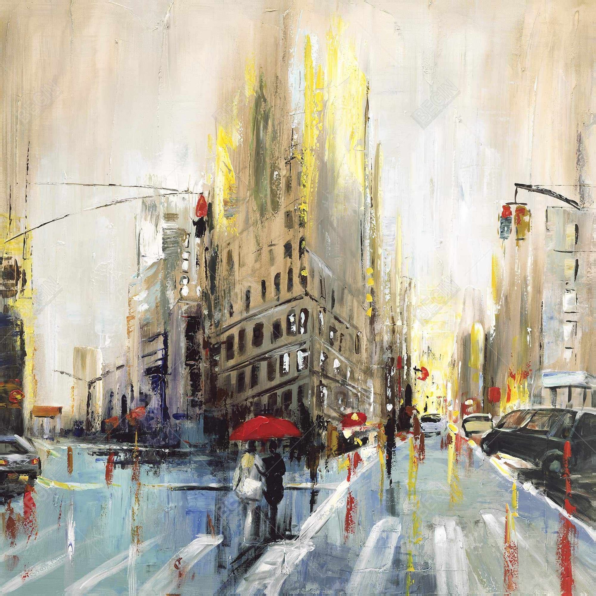 Toile beige abstraite « Rue pluvieuse » | Décoration de chambre urbaine