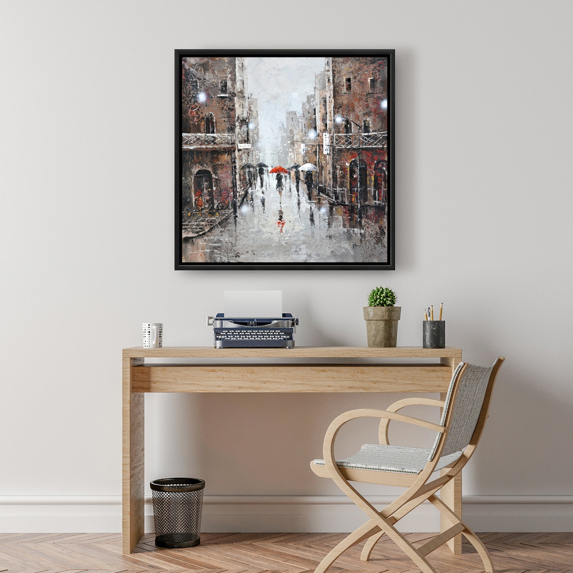 Toile City Rain - Cadre marron | Décoration murale pour chambre à coucher