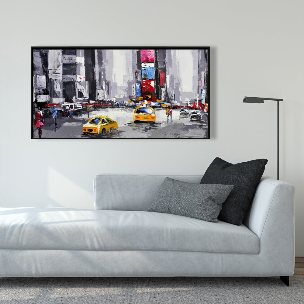 Toile abstraite de rue – Cadre bleu | Décoration murale Taxis jaunes
