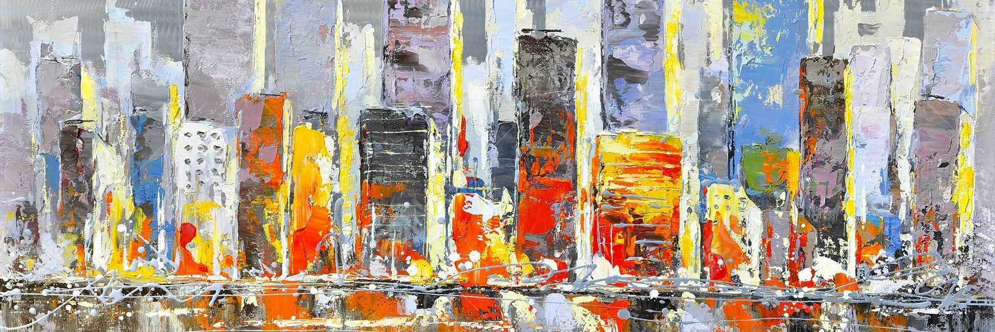 Toile encadrée Paysage urbain coloré | Décoration d'intérieur Villes bleues