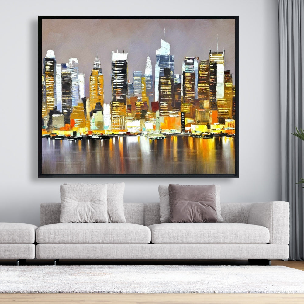 Toile encadrée | Décoration d'intérieur : Gratte-ciels texturés la nuit