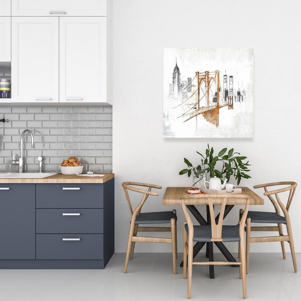 Toile de chambre à coucher avec croquis flous du pont de Brooklyn | Décoration d'intérieur