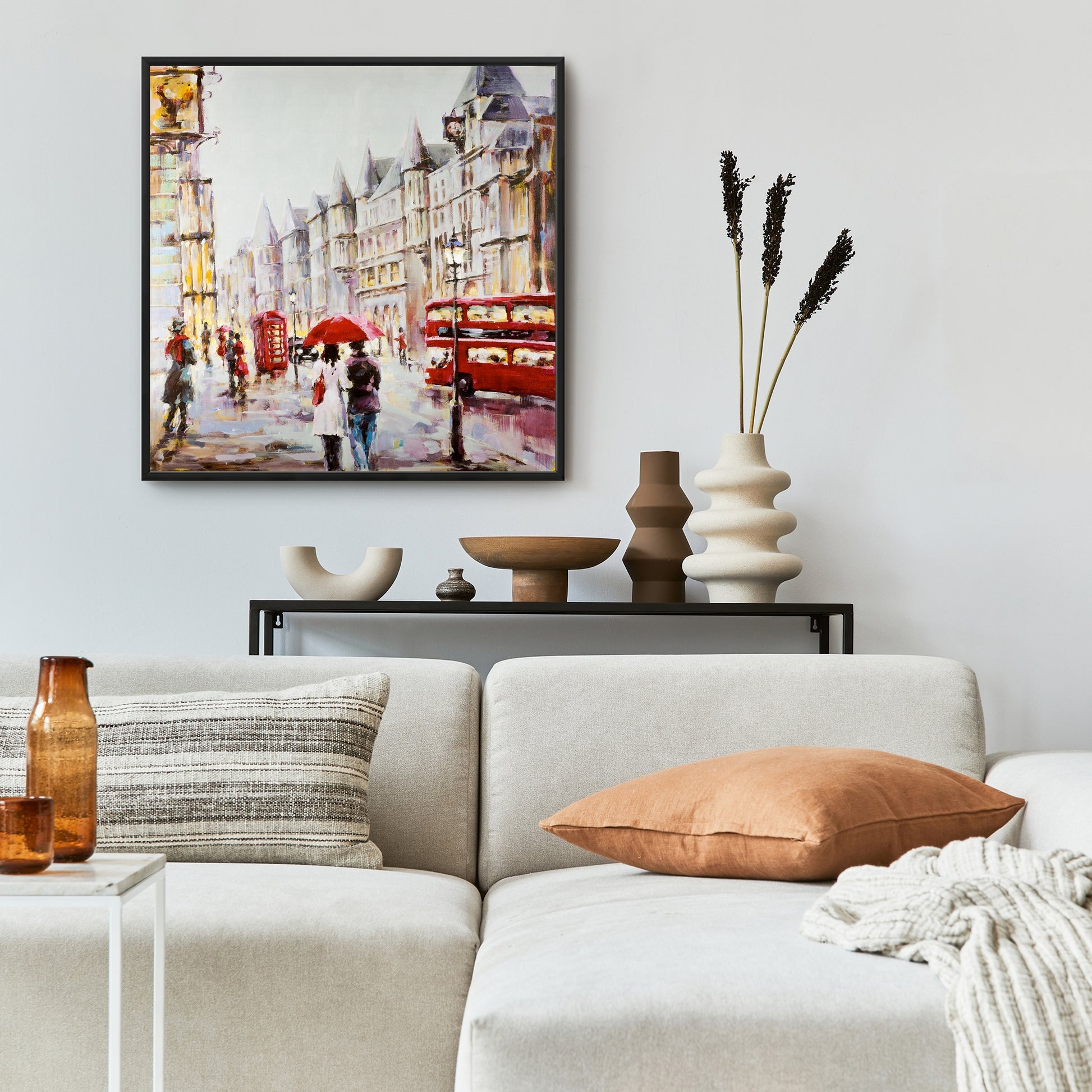 Toile encadrée rouge « Rue européenne un jour de pluie » - Décoration d'intérieur