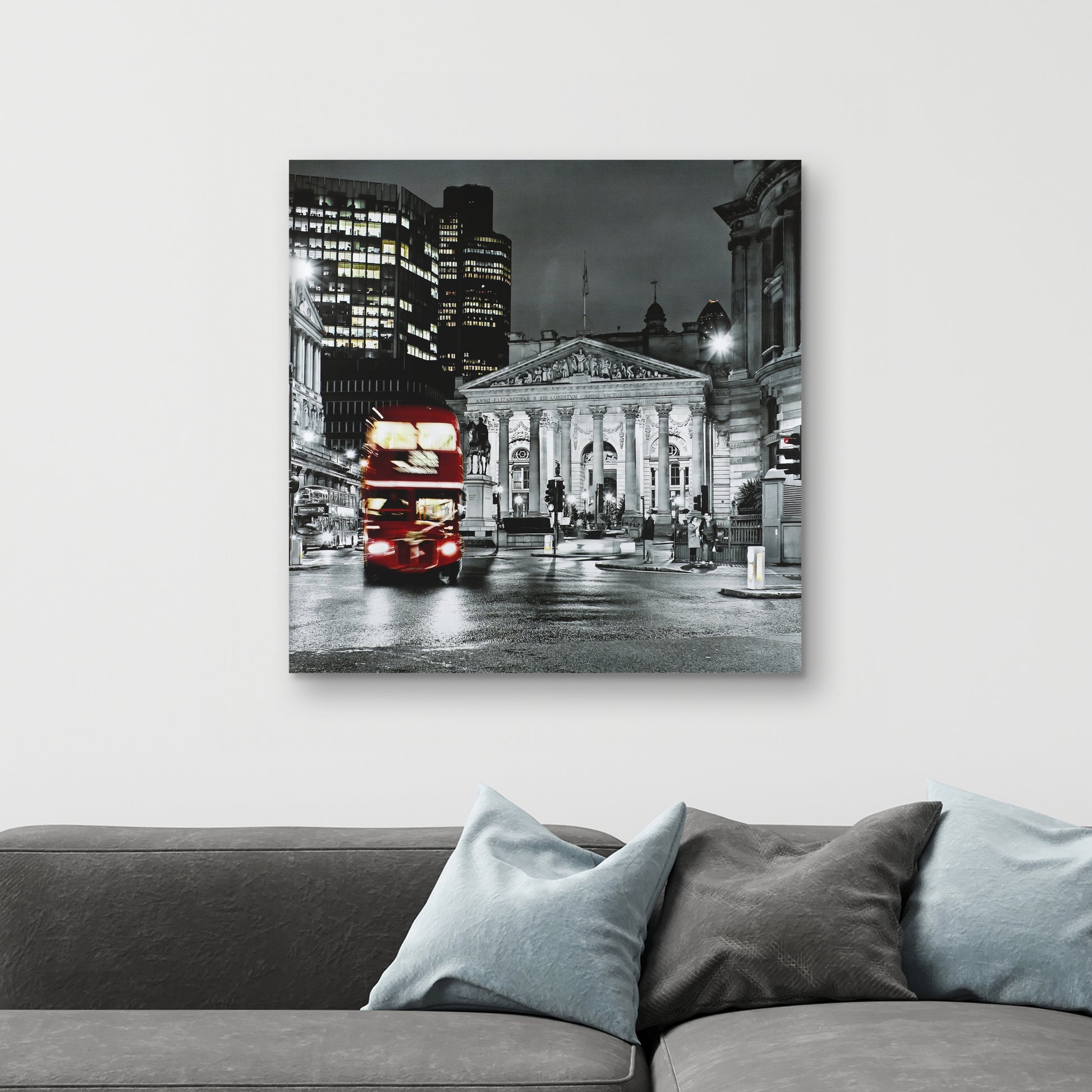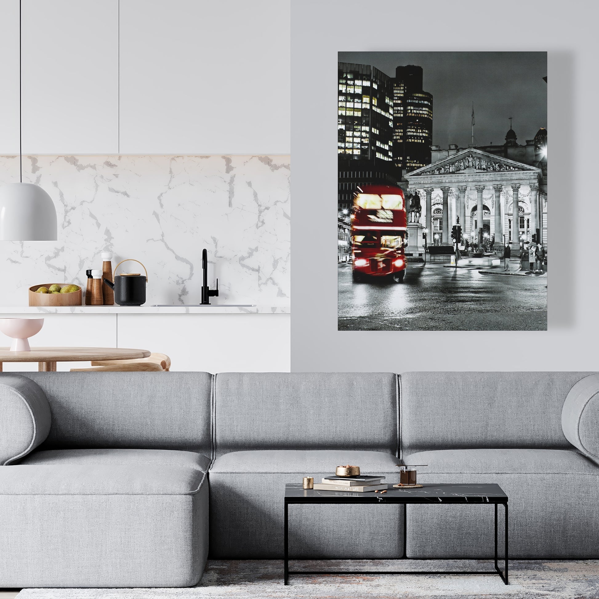 Toile de chambre à coucher « Bâtiment gris » | Panthéon en niveaux de gris, décor de bus rouge