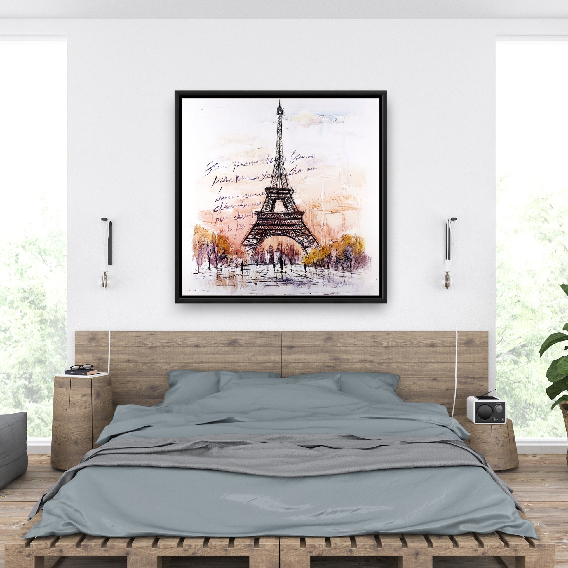 Croquis de la Tour Eiffel sur toile | Décoration de chambre romantique grise
