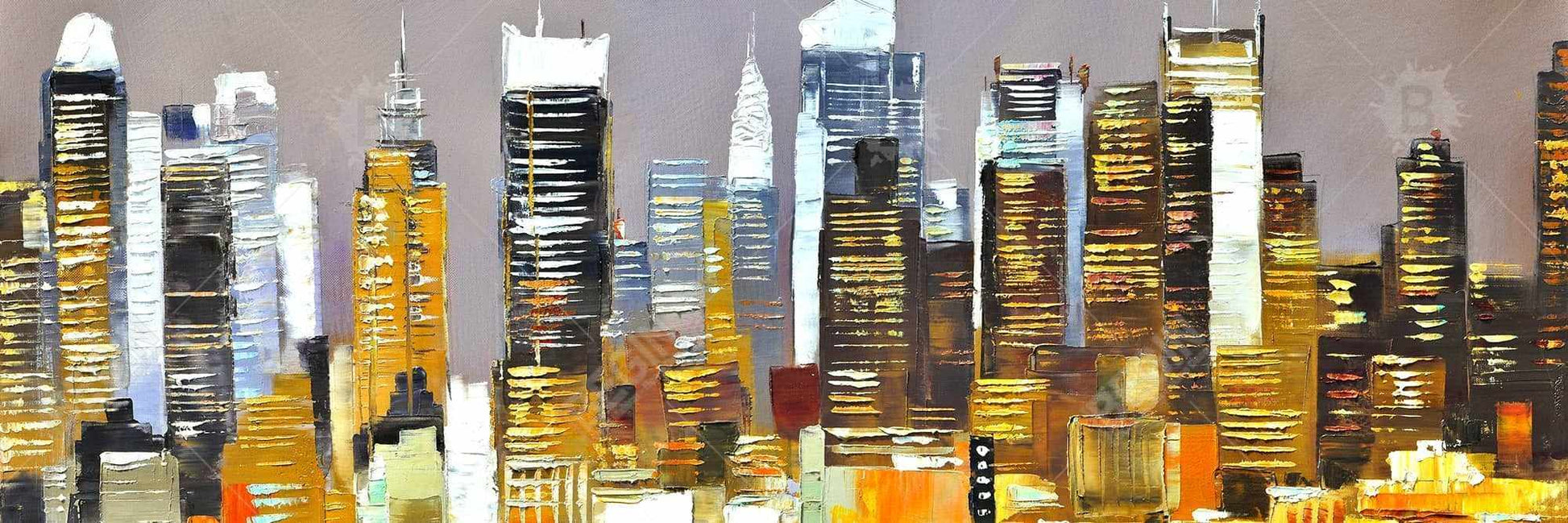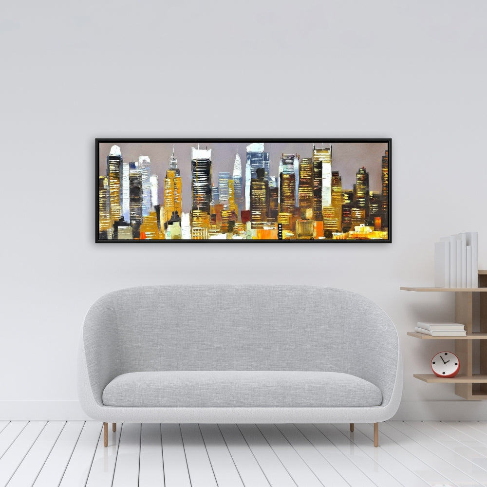 Gratte-ciel texturés de nuit | Toile encadrée marron