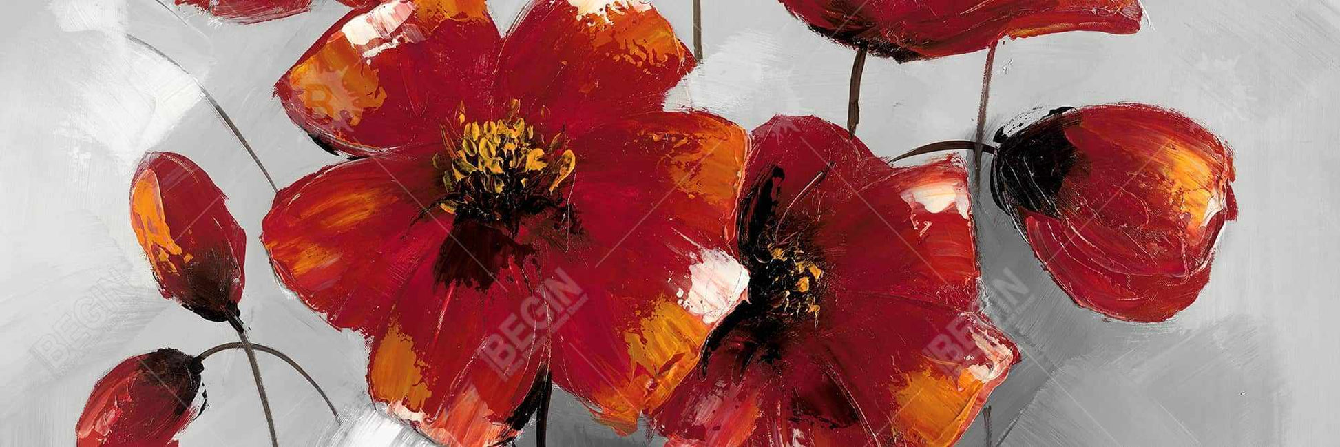 Toile moderne grise à motifs d'anémones | Décoration botanique pour la maison