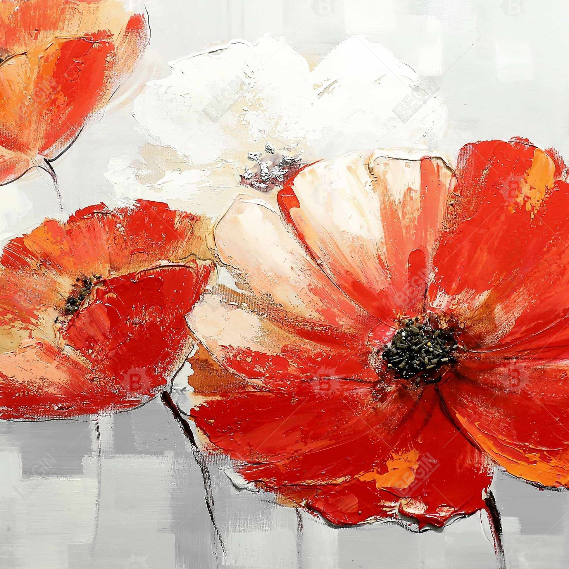 Toile encadrée abstraite de fleurs sauvages rouges | Décoration florale pour chambre