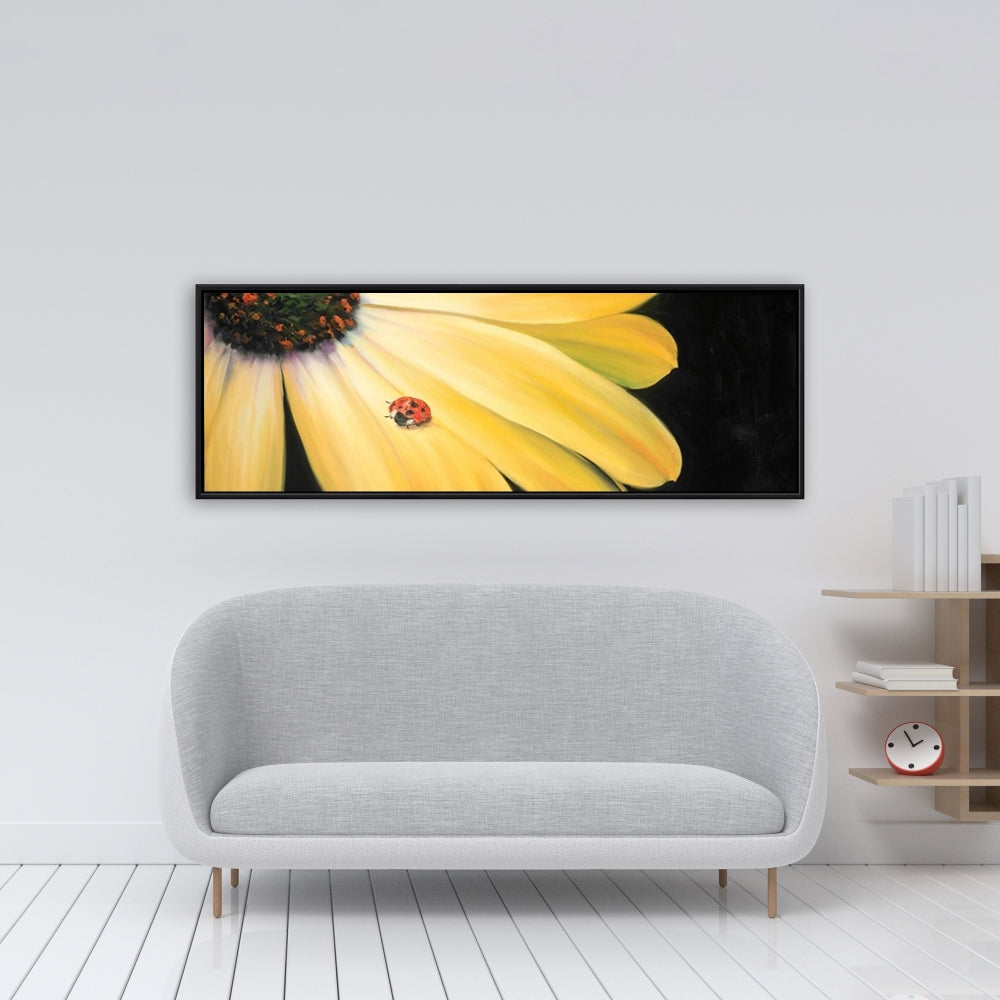Toile Marguerite jaune et coccinelle | Décoration murale botanique pour chambre