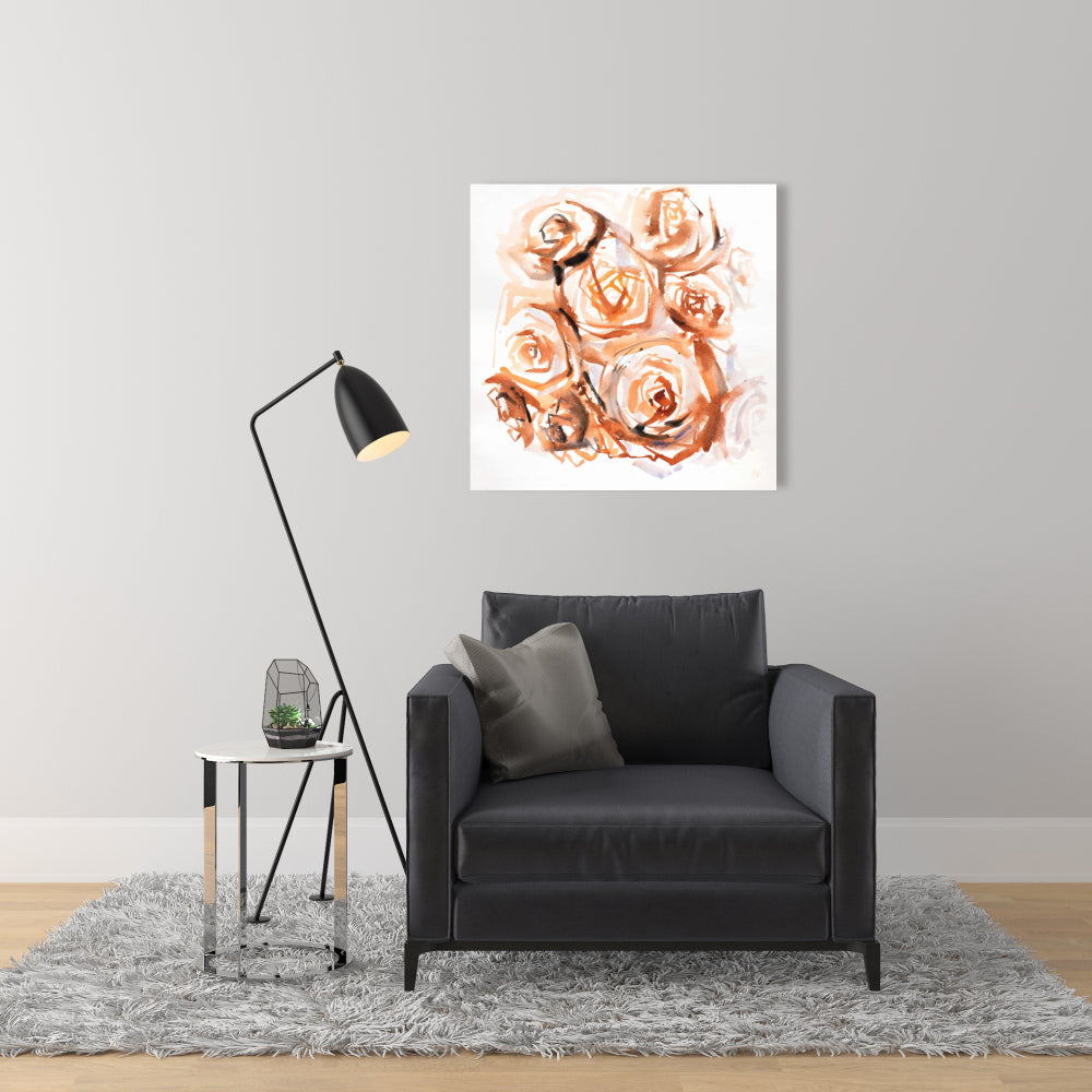 Toile sépia avec roses abstraites - Décoration murale florale marron