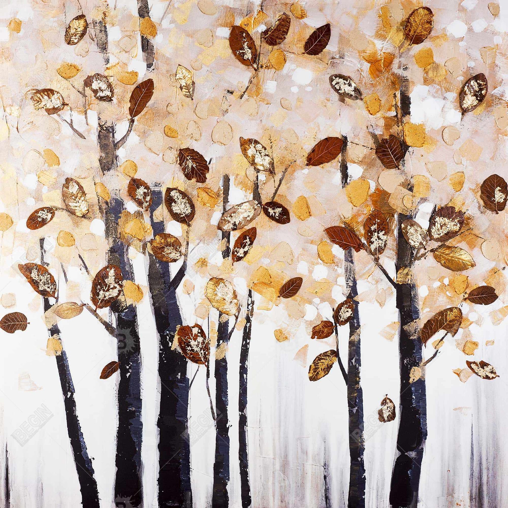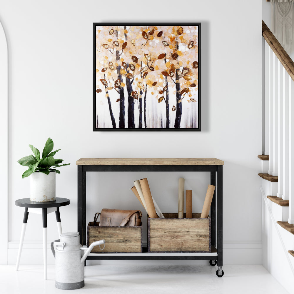 Toile marron texturée à feuilles et arbres - Décoration d'intérieur contemporaine