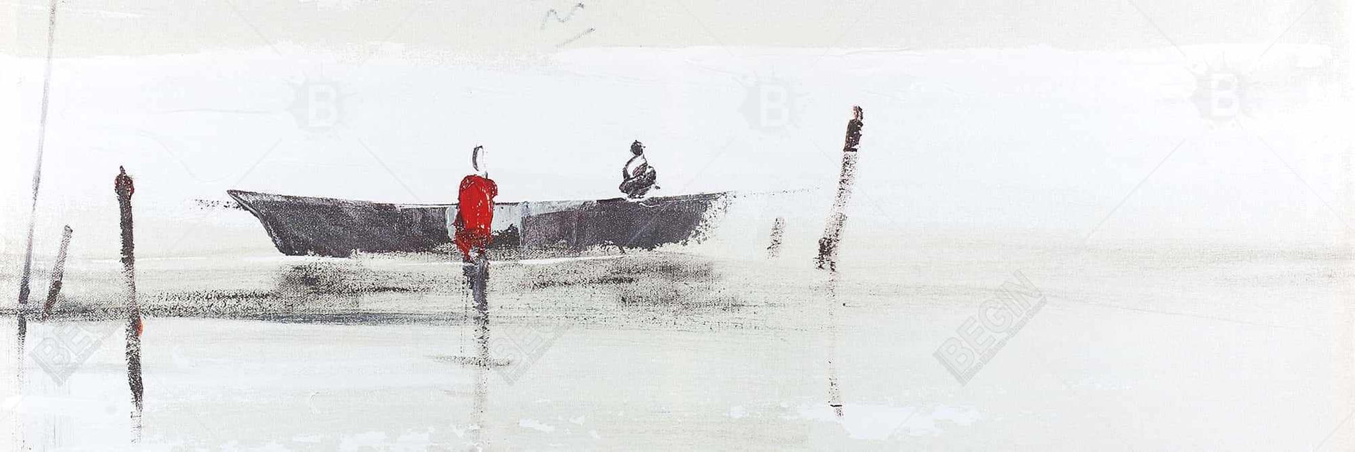 Toile de chambre à coucher représentant un bateau côtier | Décoration minimaliste sur un lac