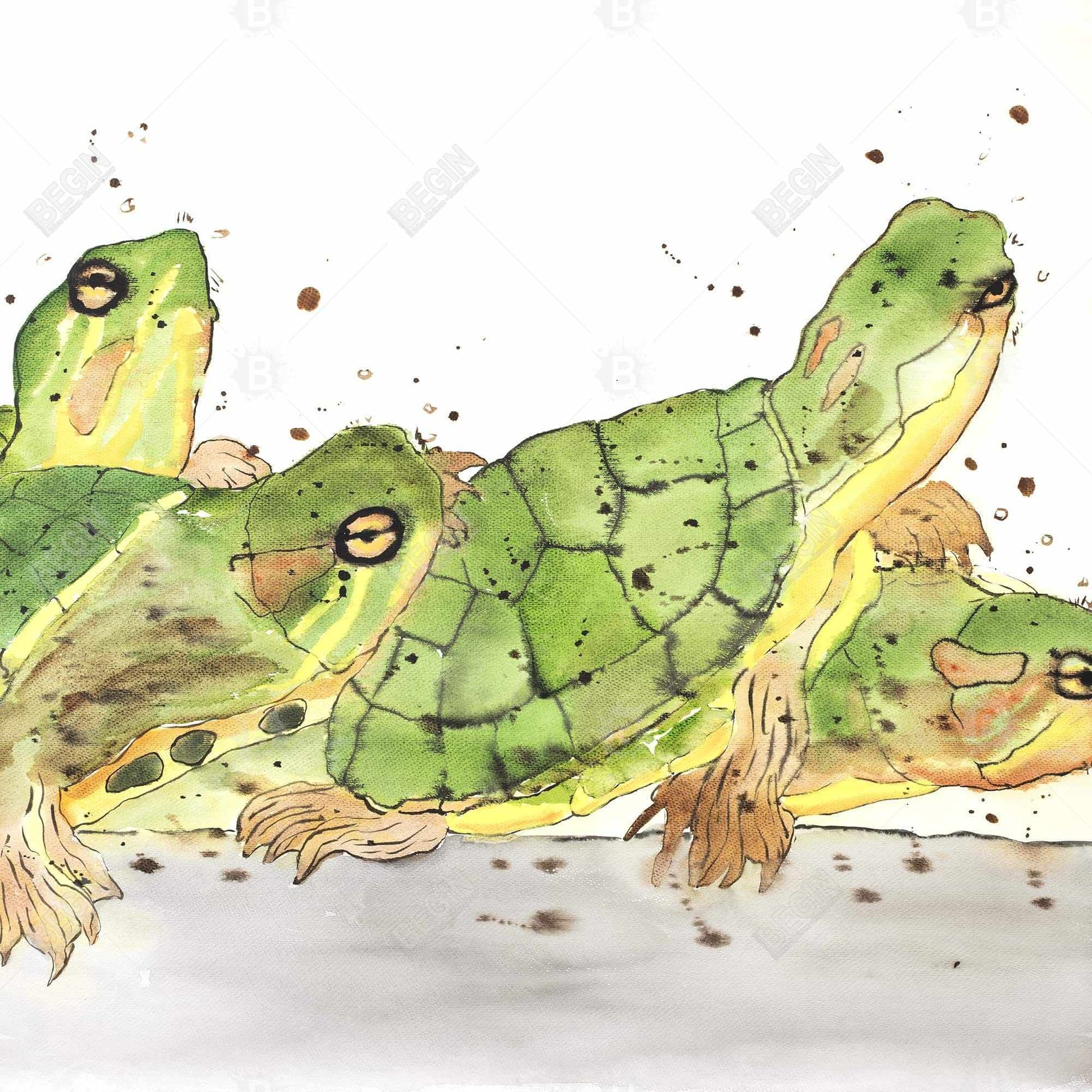 Toile encadrée Petites tortues aquatiques | Décoration animalière marron