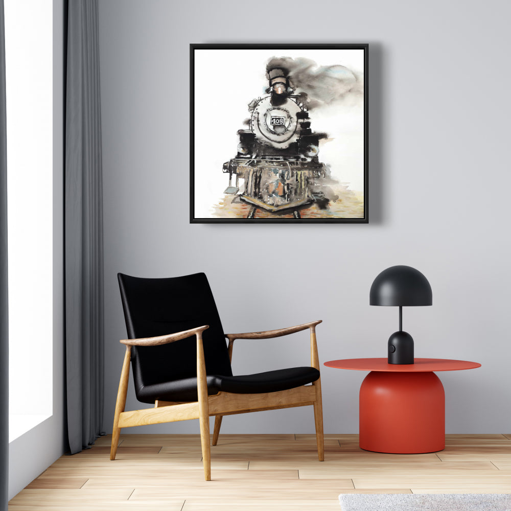 Toile Train vintage | Décoration murale encadrée style sépia industriel