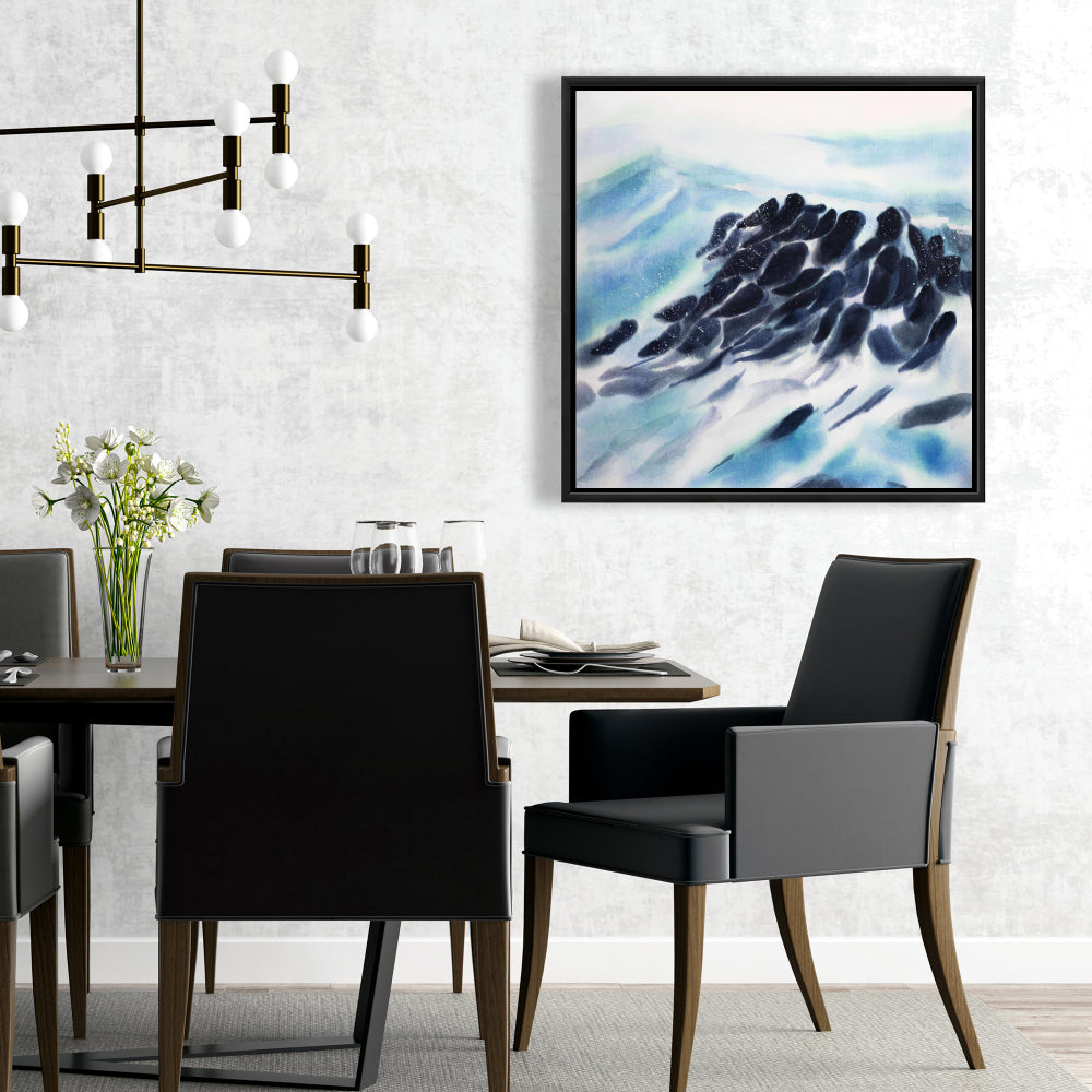 Toile encadrée bleu marine pour chambre à coucher - Éclaboussures de peinture sur vagues marines