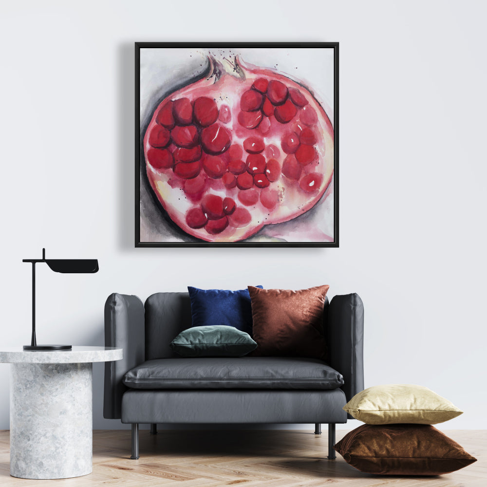 Toile encadrée rouge grenade ouverte - Décoration murale de cuisine