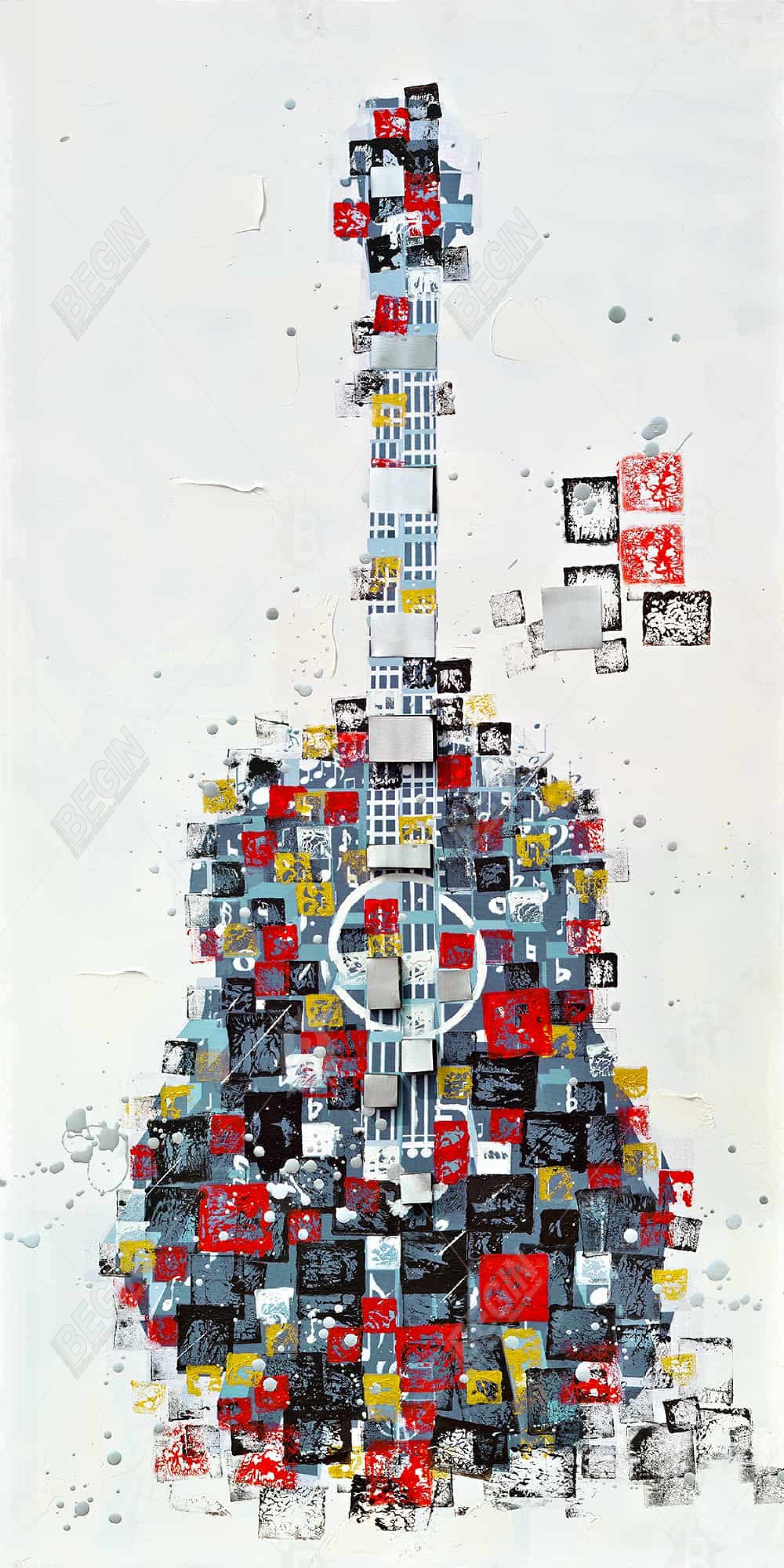 Toile de guitare géométrique abstraite | Décoration de chambre contemporaine
