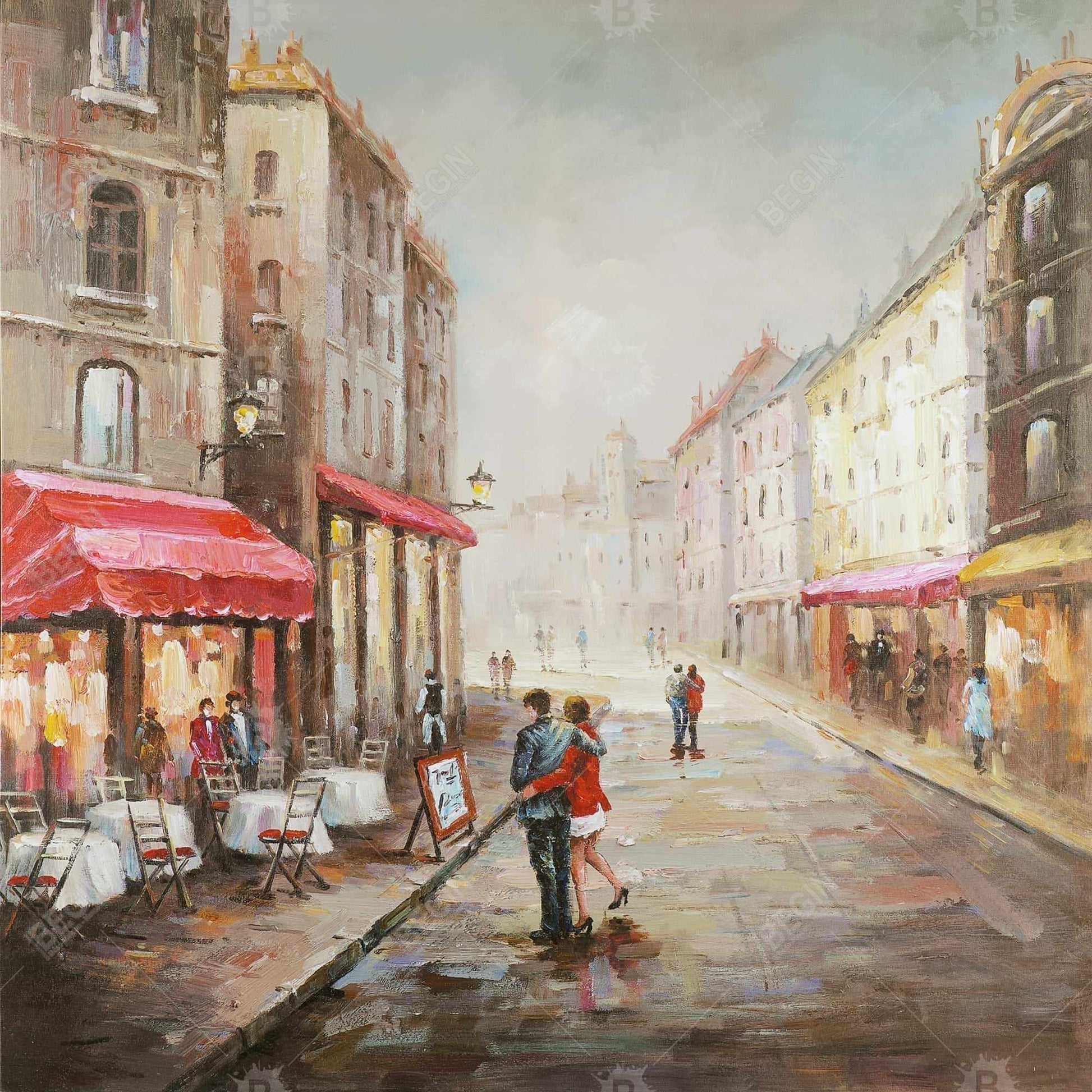 Toile « Couple marchant près d'une terrasse » | Décoration de chambre urbaine