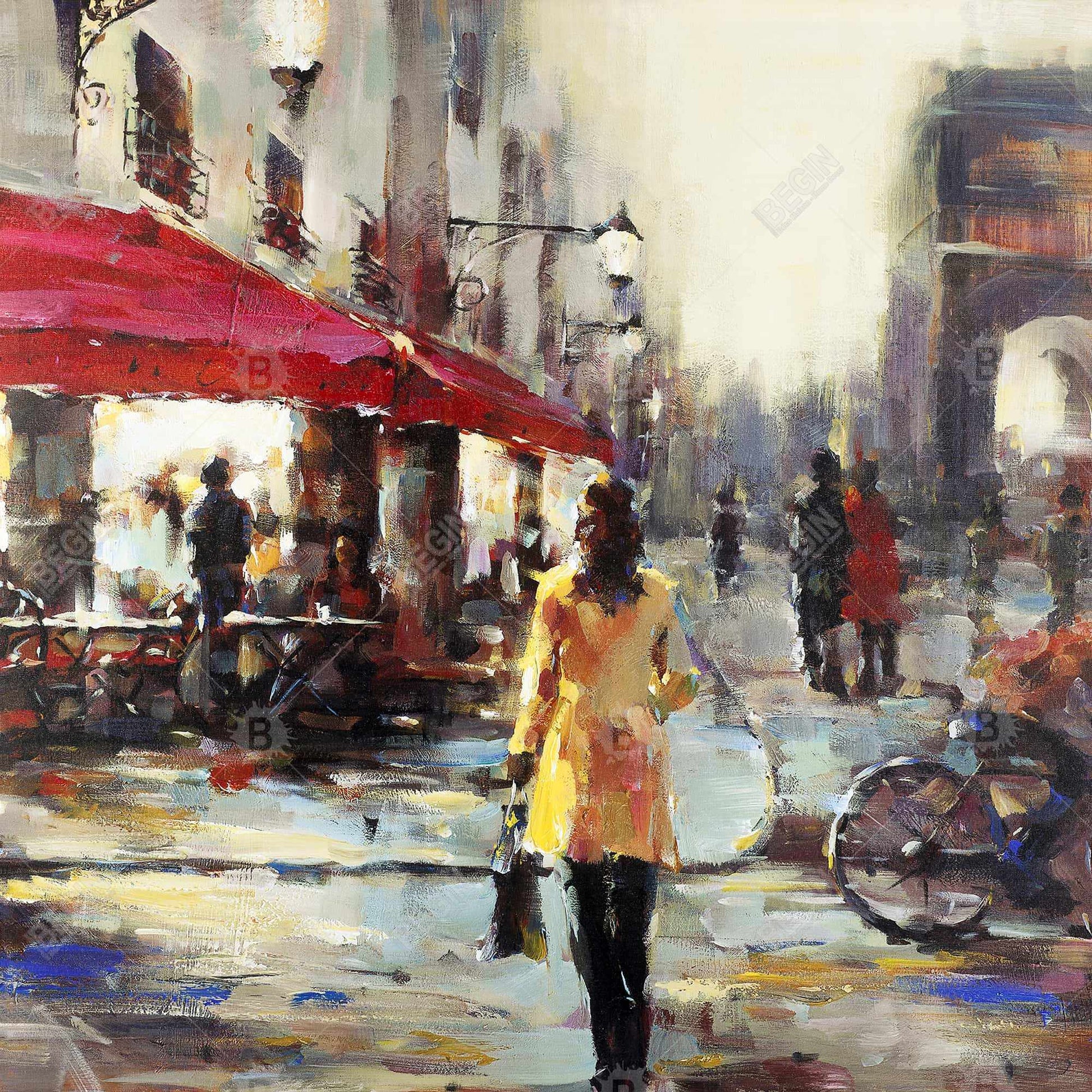 Toile contemporaine – Femme marchant à Paris | Décoration d'intérieur