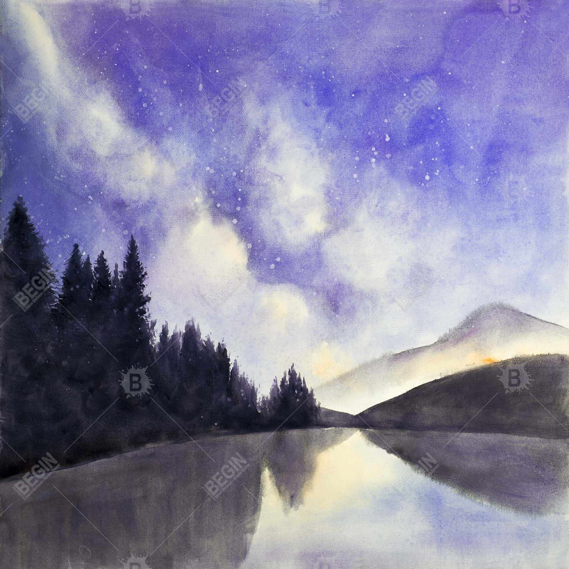 Vue étoilée sur le lac | Toile encadrée « Montagnes violettes »
