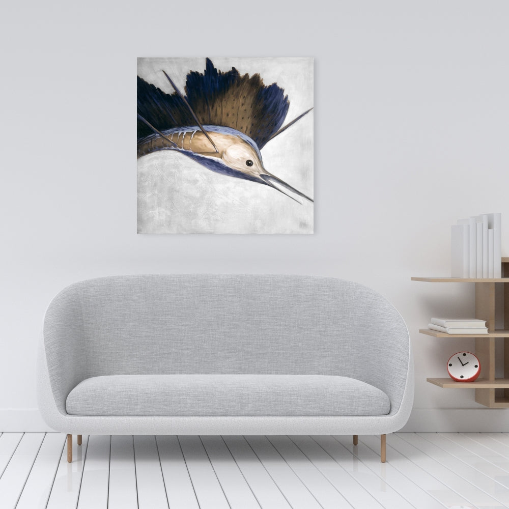 Toile abstraite représentant un espadon – Décoration murale de salle de bain bleu marine