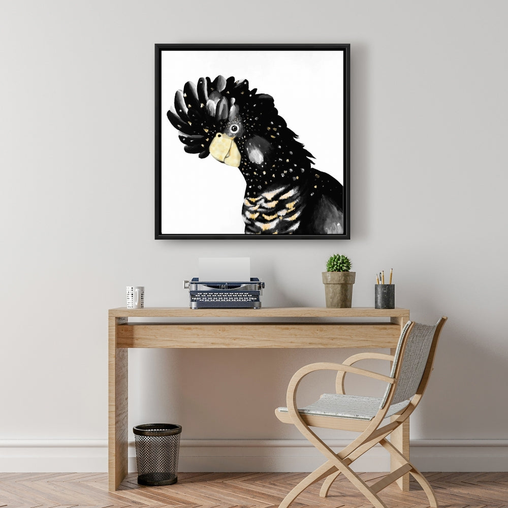 Toile encadrée représentant un perroquet cacatoès - Décoration de chambre blanche à plumes