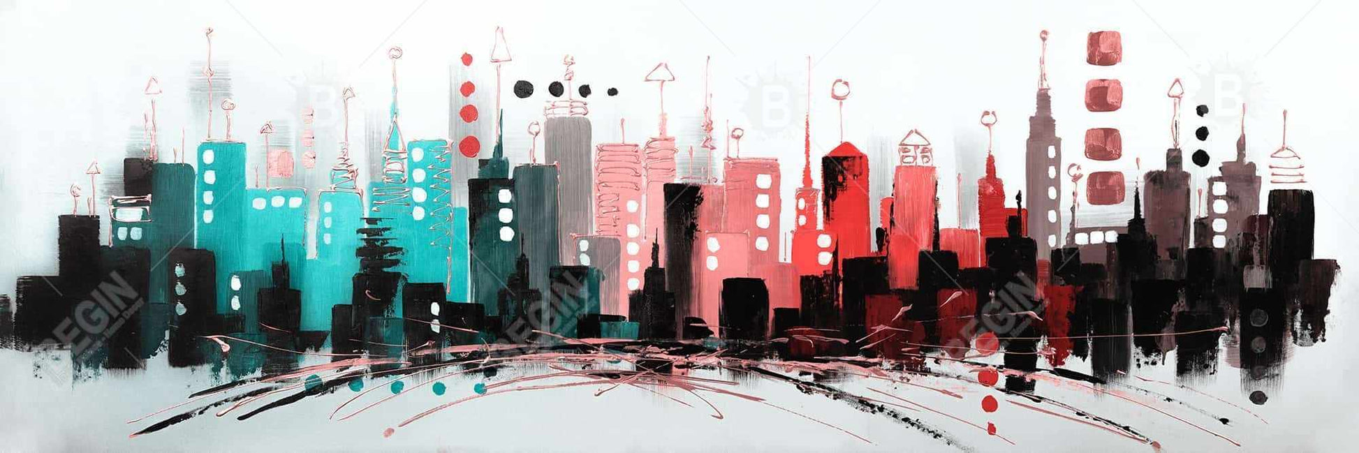 Toile encadrée or rose Paysage urbain | Décoration murale