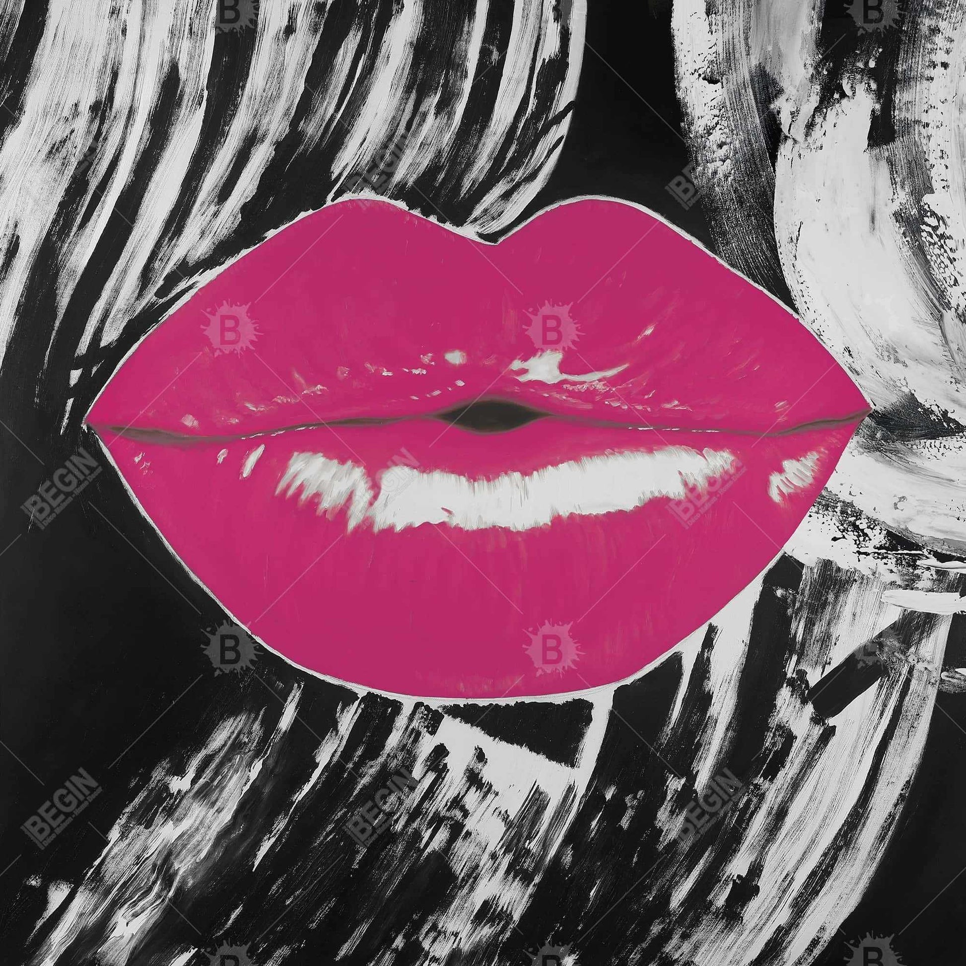 Toile encadrée « Lèvres roses brillantes » | Décoration beauté figurative