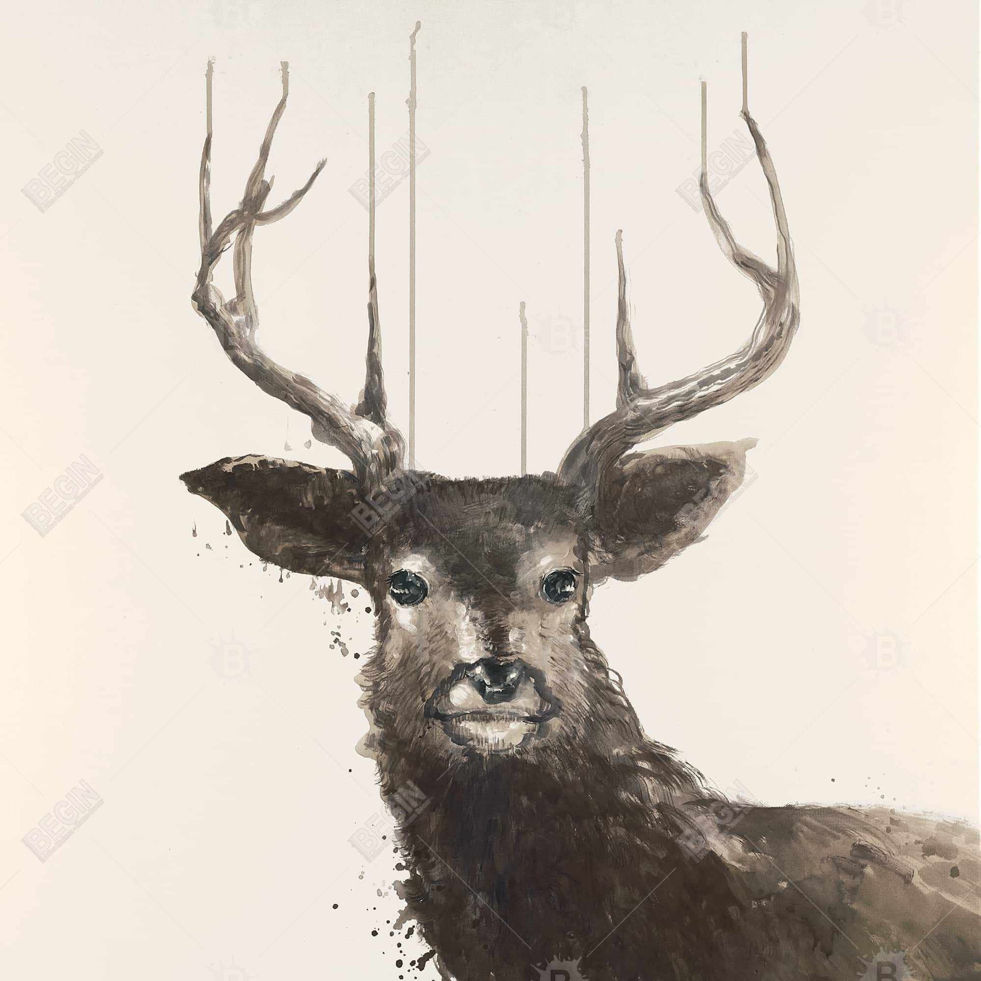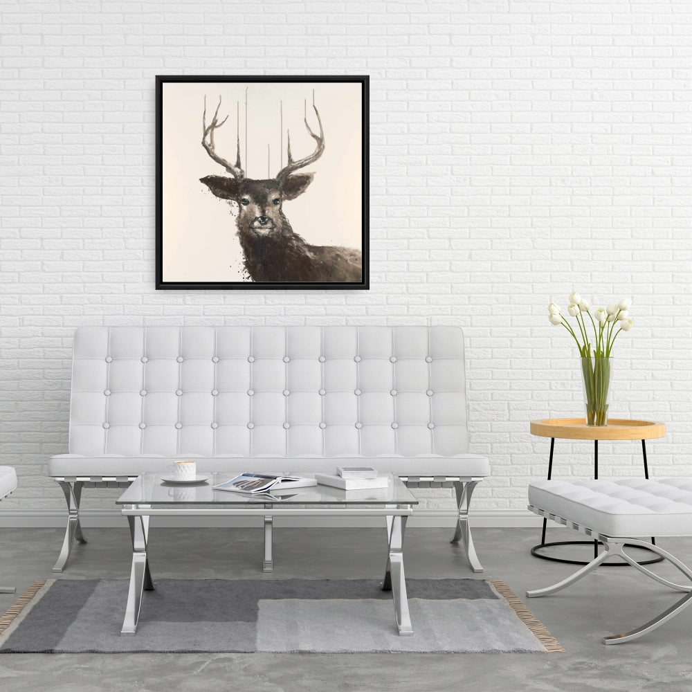 Toile abstraite représentant un cerf | Décoration rustique encadrée représentant un cerf pour la chambre