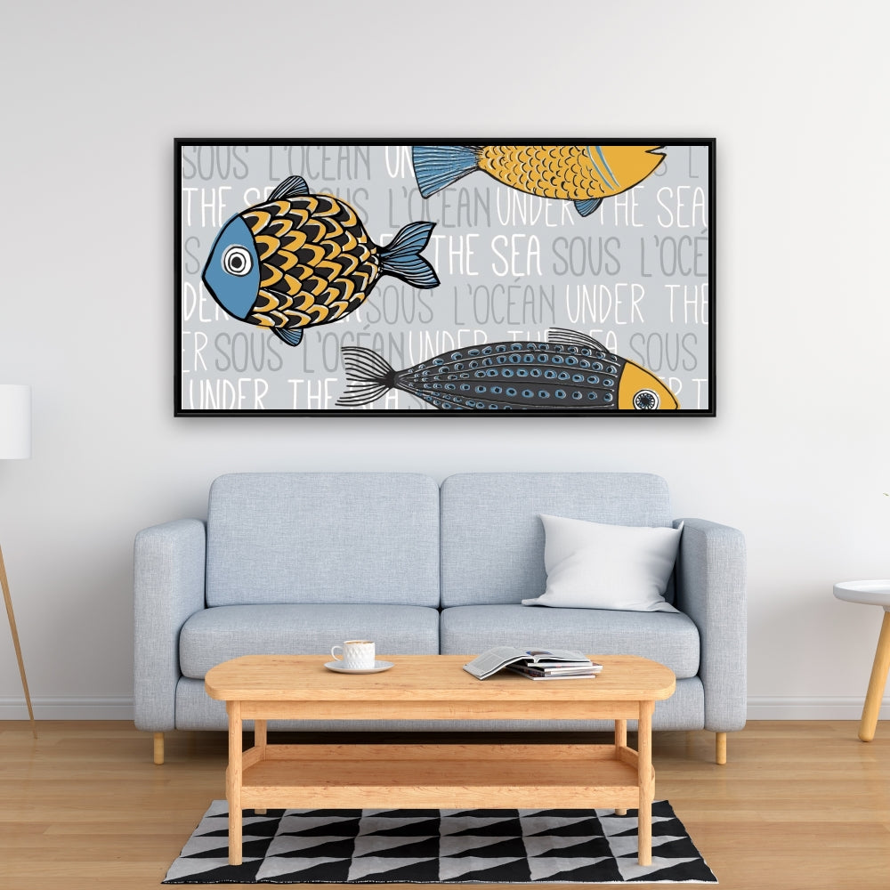 Toile grise marine pour chambre à coucher | Décoration de poissons nautiques
