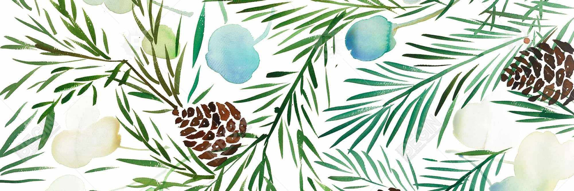 Toile botanique avec pomme de pin | Cadre blanc minimaliste