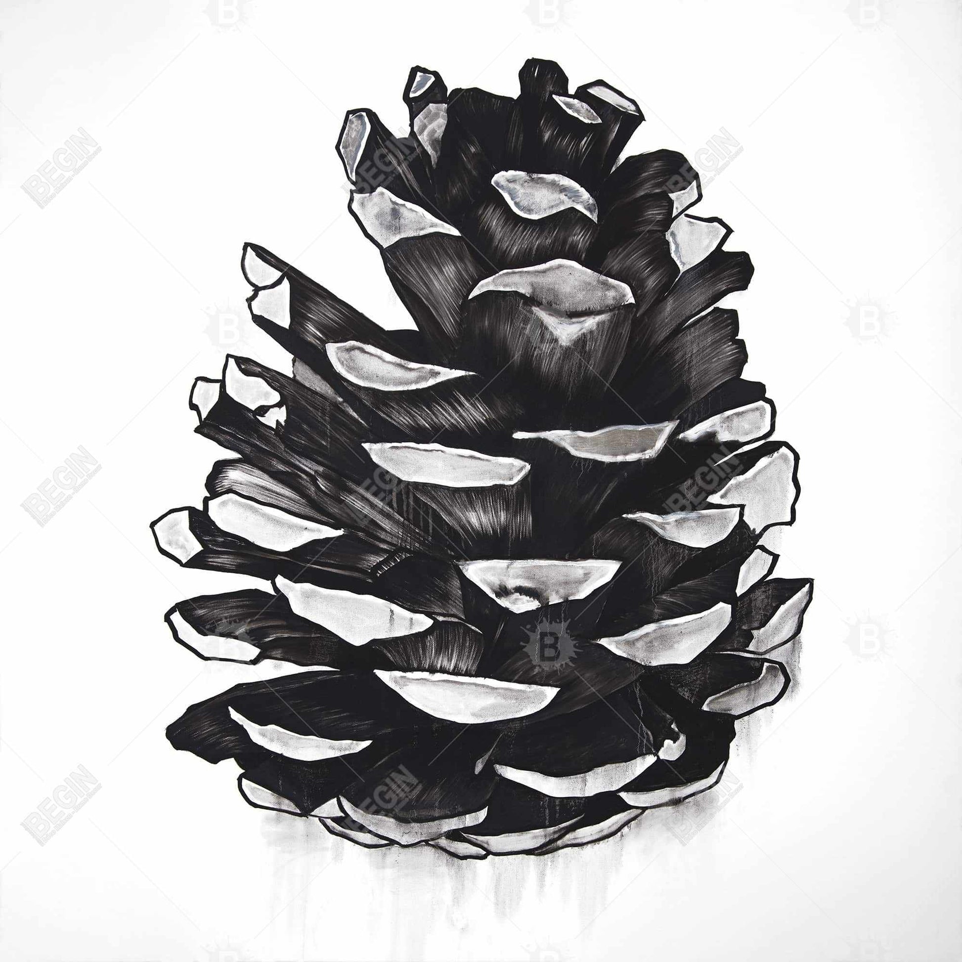 Toile botanique avec pomme de pin | Décoration murale encadrée grise
