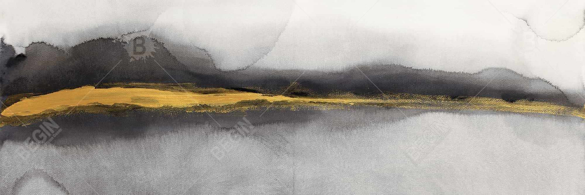 Toile abstraite à rayures dorées | Décoration d'intérieur avec cadre blanc