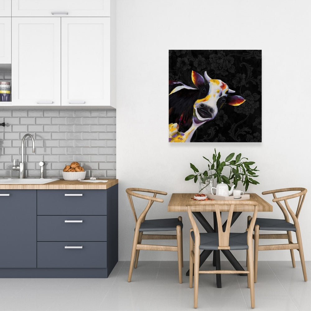 Décoration de chambre rustique | Toile murale blanche représentant une vache amusante