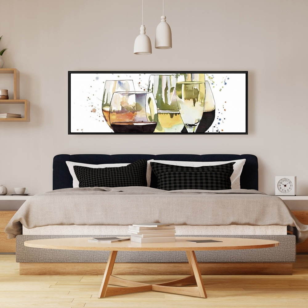 Toile encadrée jaune pour cuisine | Superbe décoration de verres à vin