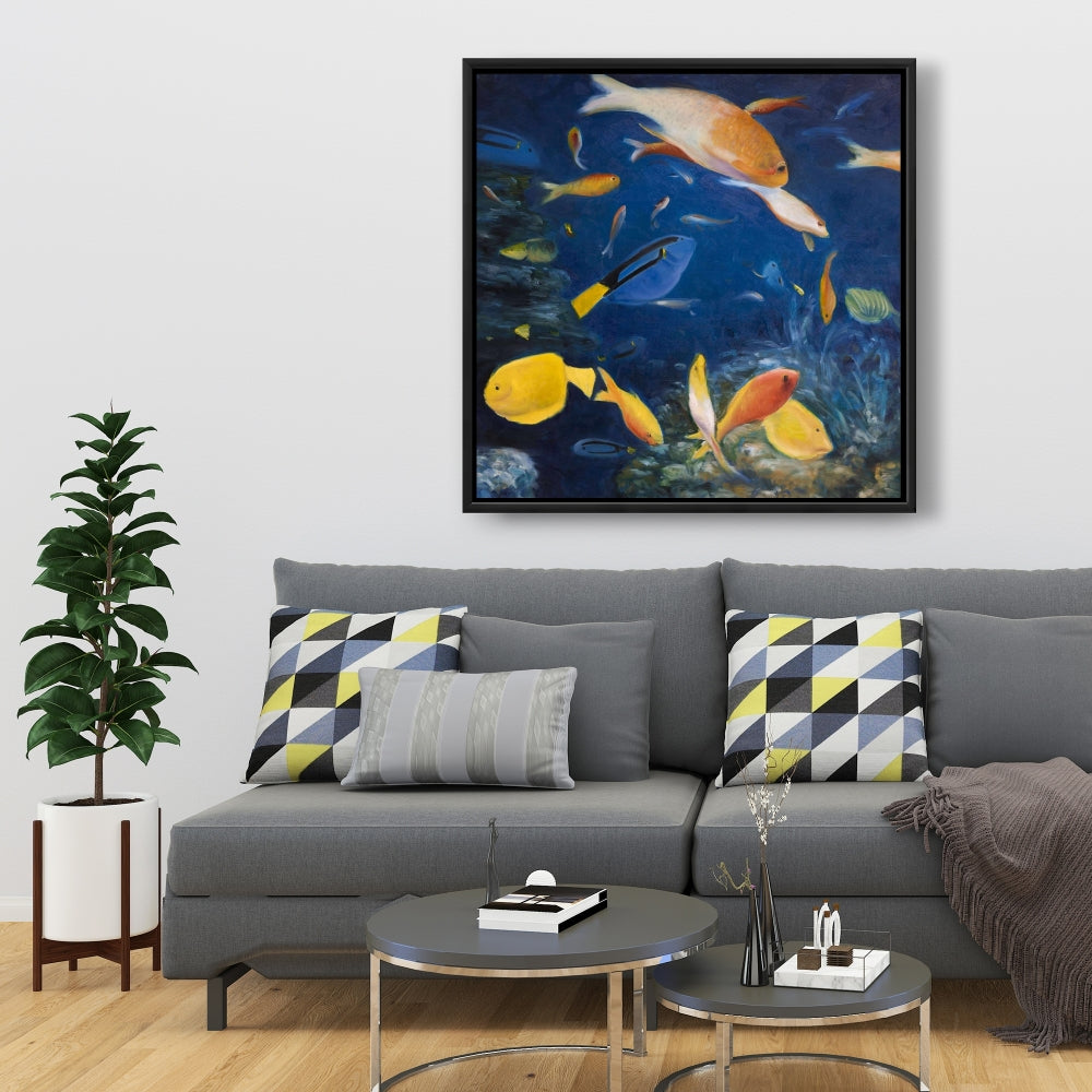 Toile encadrée « Poissons colorés sous la mer » – Décoration d'intérieur exotique