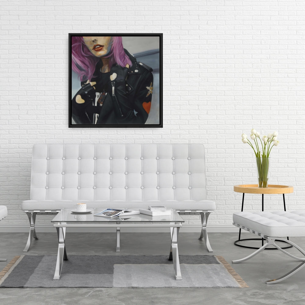 Toile Jeune femme punk | Décoration de chambre rétro violette