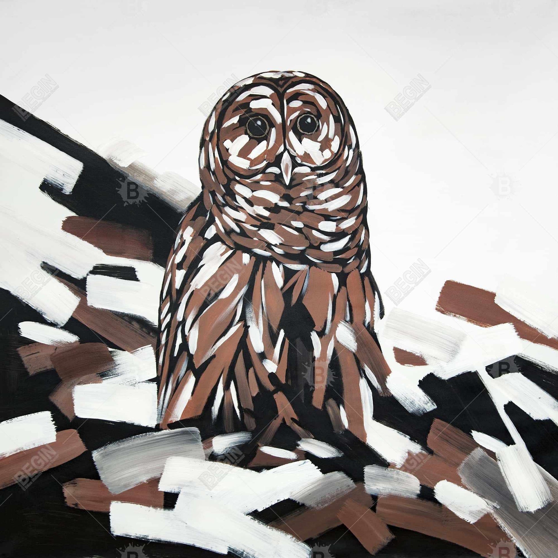 Toile rustique représentant une chouette hulotte | Décoration d'intérieur encadrée
