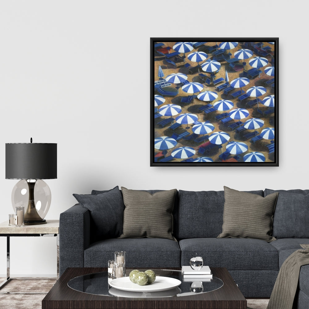 Toile encadrée « Parasols de plage bleu côtier » | Décoration d'intérieur