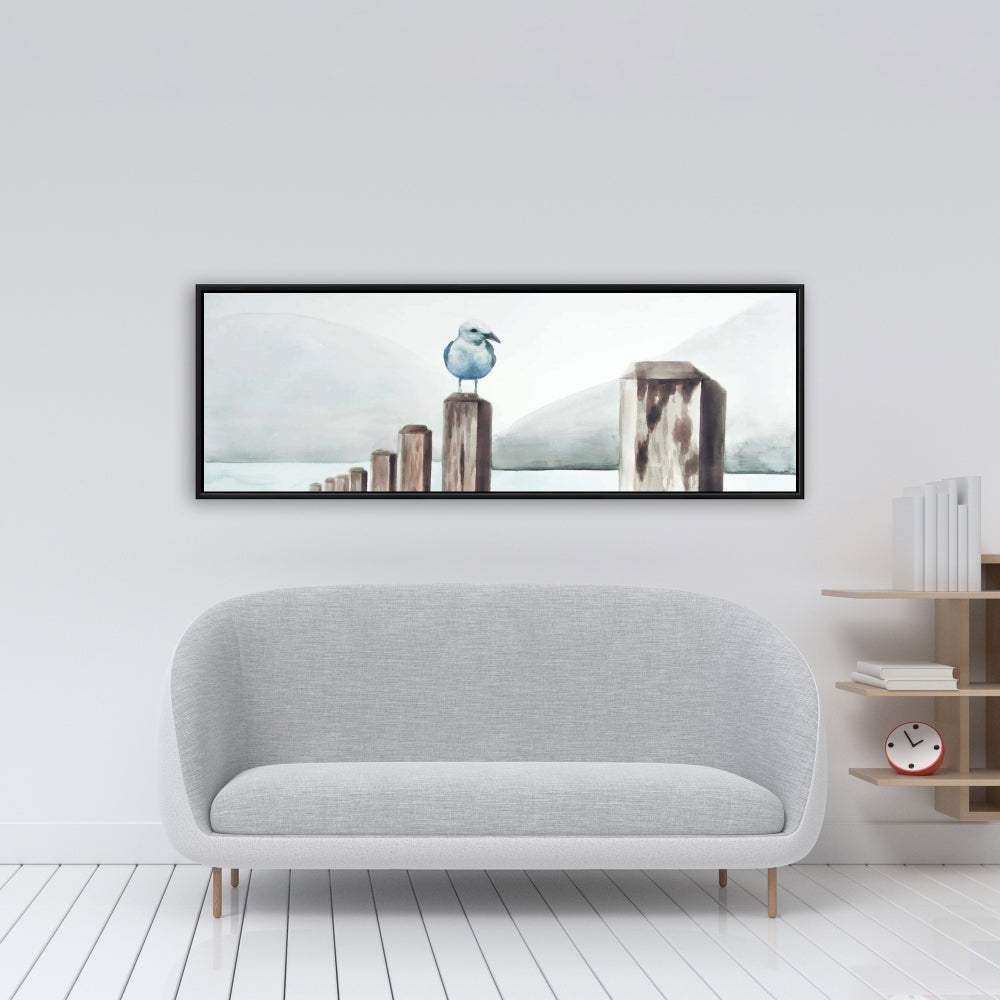 Mouette à la marina | Toile encadrée bleu marine