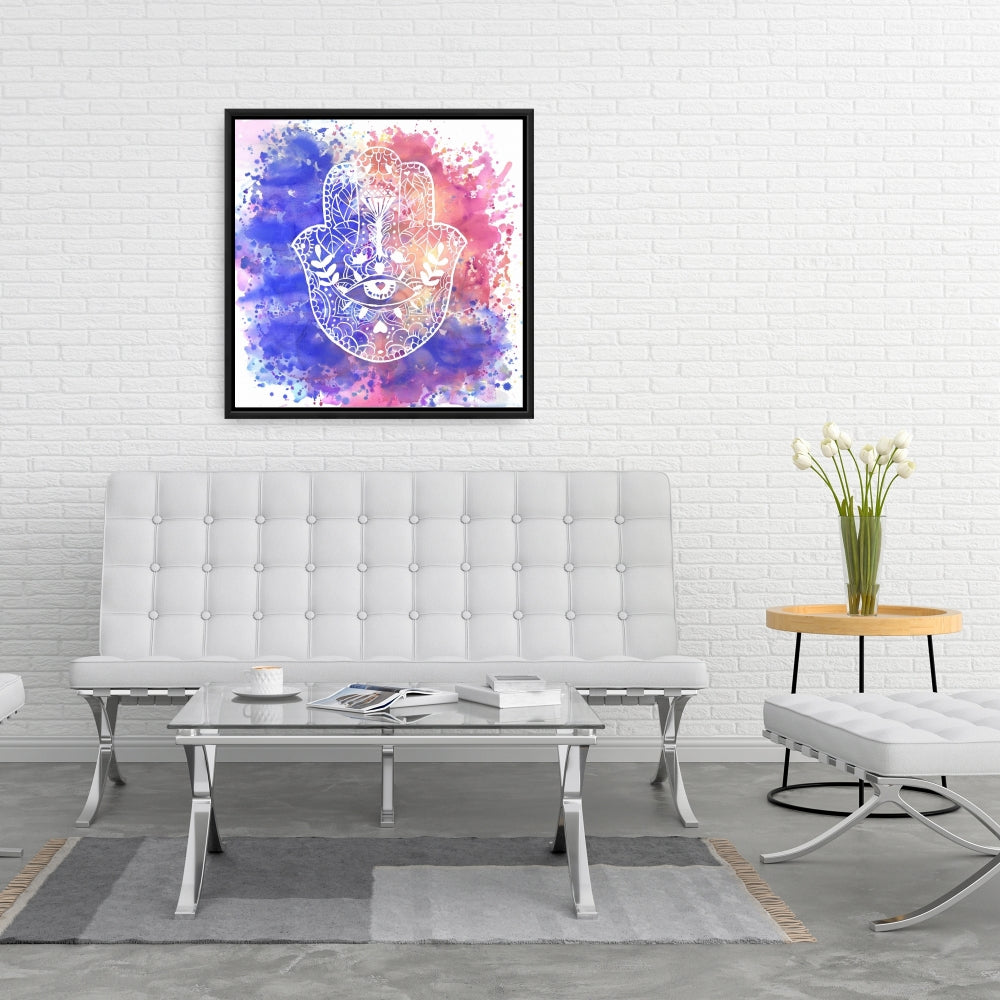 Toile Main de Hamsa | Décoration spirituelle violette pour chambre à coucher