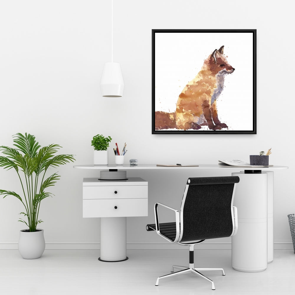 Décoration de salon scandinave | Toile encadrée marron représentant un renard roux