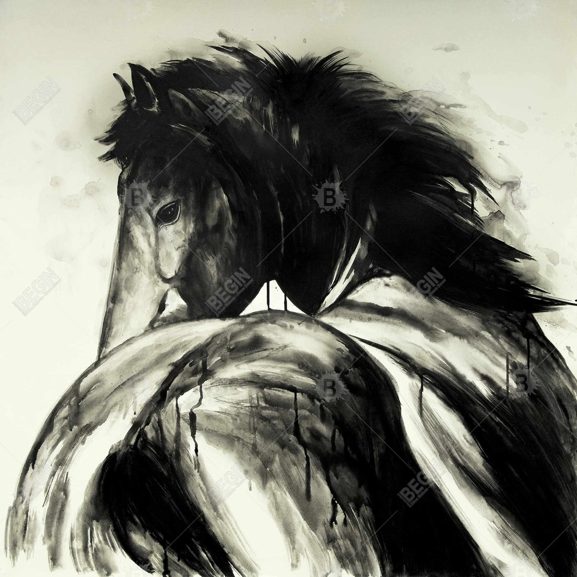 Toile encadrée classique représentant des chevaux et des animaux de la ferme | Décoration de salon rustique