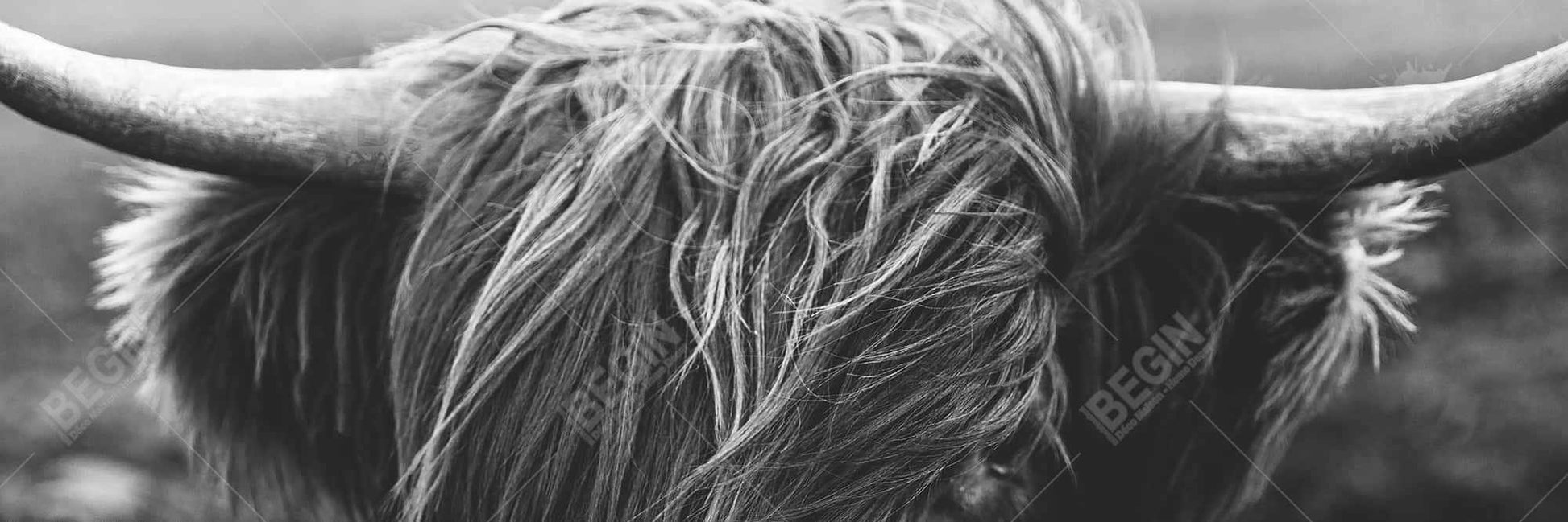 Toile monochrome représentant une vache des Highlands - Décoration de salon encadrée blanche