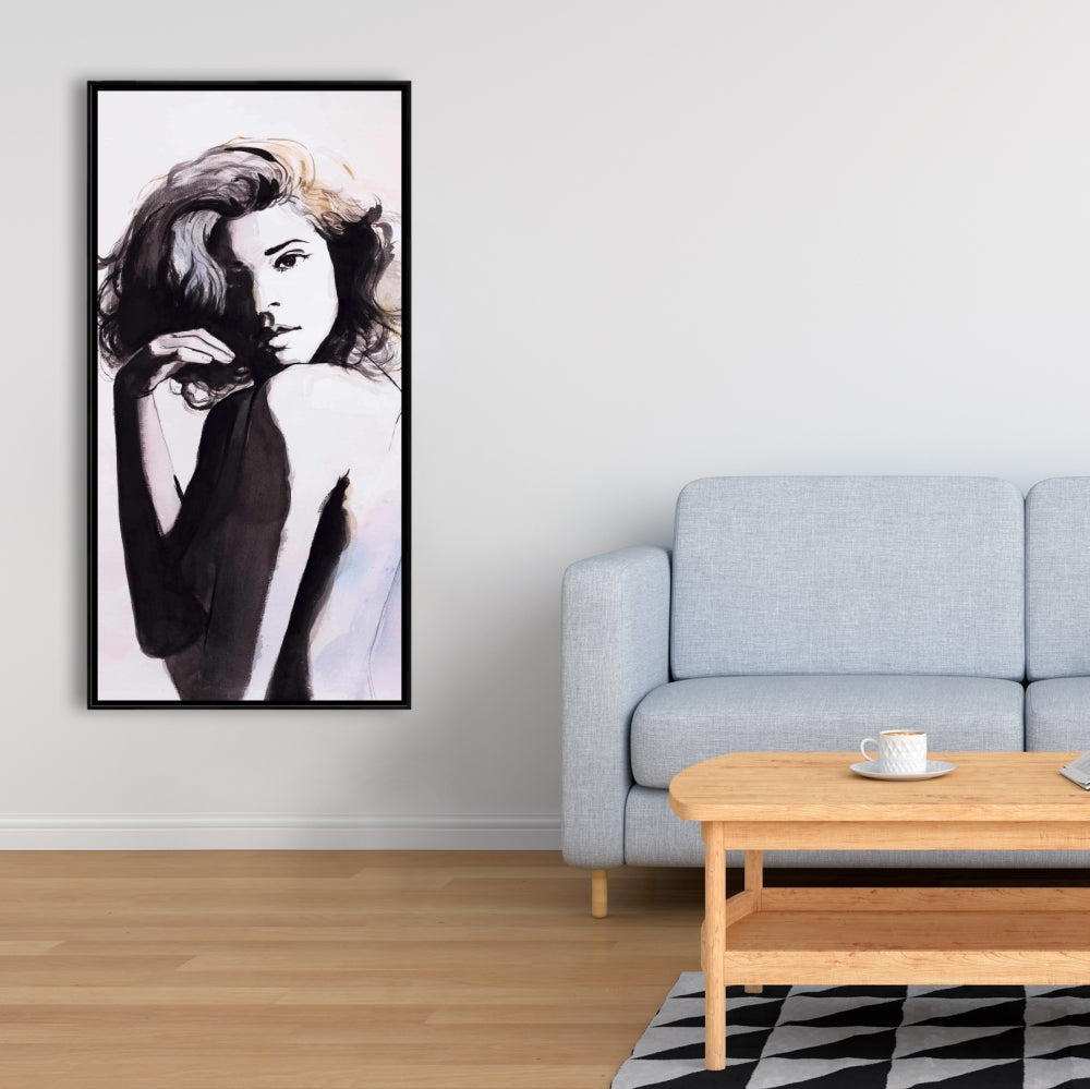 Toile encadrée « Presque nue » – Décoration romantique pour chambre à coucher